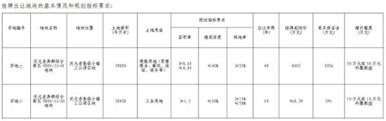 據(jù)悉,兩宗地坐落于慶元縣香菇小鎮(zhèn)三公灣區(qū)塊,其中慶元縣屏都綜合新區(qū)PD05-33-01地塊(宗地一)出讓面積39880平方米,土地用途為商服用地(零售商業(yè)、餐飲、旅館、娛樂等),掛牌起始價4052萬元,競買保證金2026萬元;慶元縣屏都綜合新區(qū)PD05-33-02地塊(宗地二)出讓面積38428面平方米,土地用途為工業(yè)用地(“標(biāo)準(zhǔn)地”),掛牌起始價968.39萬元,競買保證金291萬元。