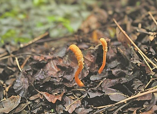 蛹蟲草別名北冬蟲夏草、北蟲草、蛹草,為近危(NT)級別保護物種,由子座(即草部分)與菌核(即蟲的尸體部分)兩部分組成。蛹蟲草寄生于鱗翅目幼蟲的繭和蛹上,多出現(xiàn)于林地枯枝落葉層中。野生蛹蟲草在世界各地均有分布,在中國主要分布于云南、安徽等地。據(jù)悉,蛹蟲草富含蟲草素、蟲草多糖和蟲草酸(即D-甘露醇)。我國已將由蟲草素合成的治療白血病的新藥進行臨床試用。蟲草多糖是國際公認的人體免疫增強劑,而蟲草酸則是治療心腦血管疾病的基本藥物,具有清除自由基、擴張血管、降低血壓的作用。