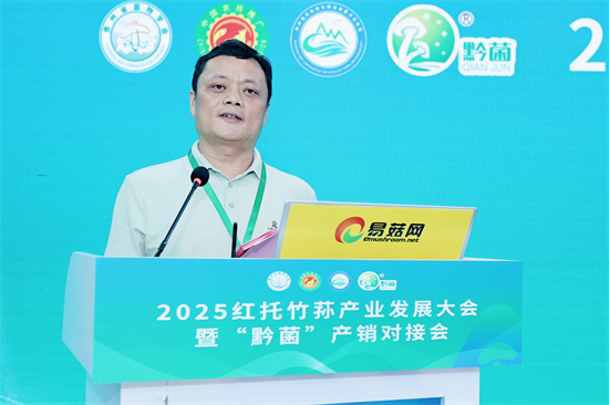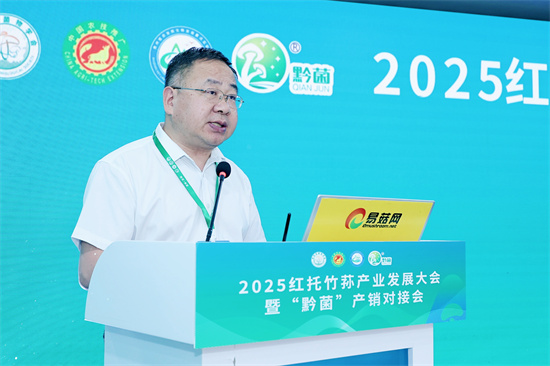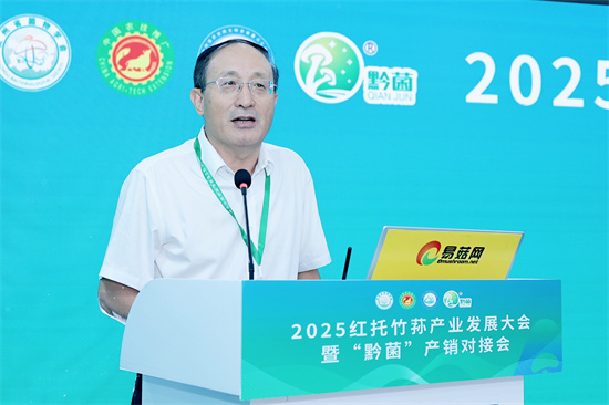 賀信中指出,食用菌是關乎國計民生和踐行國家戰略的重要產業,紅托竹蓀作為貴州珍稀特產,營養豐富、價值獨特。李玉院士充分肯定貴州食用菌產業發展成就,構建了全產業鏈體系,實現從林下栽培到標準化生產、深加工的重大跨越,成為帶動農戶增收和生態民生協同發展的優秀范例。針對未來,他提出三點希望:堅持科技賦能,加強種源攻關與智慧栽培;堅持市場導向,打通產銷通道提升品牌競爭力;堅持綠色發展,守護優質食用菌生產凈土。最后,他預祝大會圓滿成功,貴州食用菌產業再創佳績。