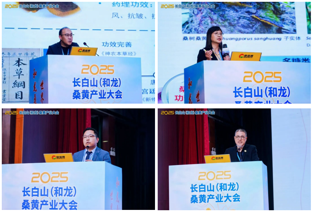 大會報告環節,吉林省食藥用菌產業技術體系桑黃和龍綜合試驗站站長、吉林農業大學教授劉樸,吉林桑黃生物科技集團有限公司副總經理、桑黃研究院院長劉杰 ,臺灣自然科學博物館研究員吳聲華,深圳九能品牌管理公司合伙人、農業品牌顧問李臨春,和龍桑黃科技小院負責人、吉林農業大學教授王迪 ,中國菌物學會桑黃產業分會秘書長、上海市農業科學院研究員楊焱,延邊大學醫學院副教授崔昊震,吉林省非物質文化遺產滿醫滿藥傳承人、中國民族醫藥學會滿醫藥委員會副會長、清乾隆帝七世孫愛新覺羅恒紹圍繞桑黃分類、活性成分、臨床應用、品牌建設等熱點議題展開深入交流。