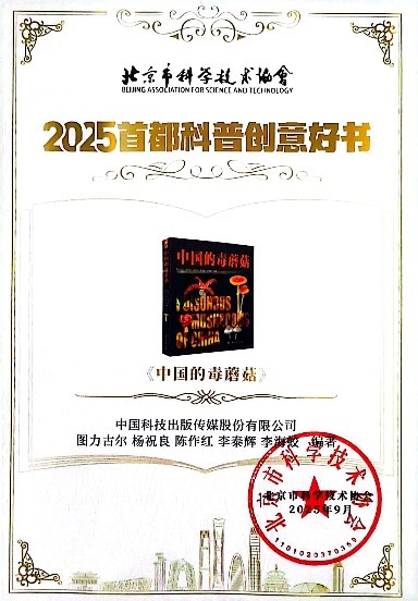 據悉,在近期舉行的“2025首都優秀科普好書”評比中《中國的毒蘑菇》榮獲科普創意好書獎!“好書”是由北京市科協主辦的專業科普圖書推薦活動,2023年起每年舉辦一次。今年的活動有來自101家出版社的335部科普作品參加,經專家評議選出100部圖書入圍。