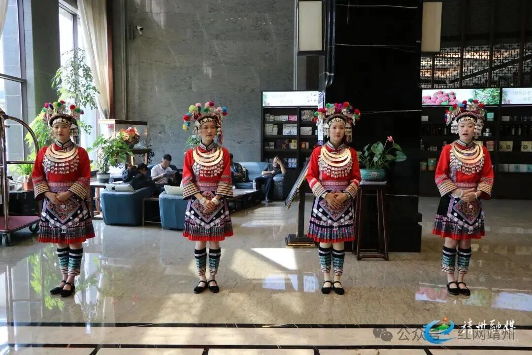 穿著少數民族服飾的迎賓人員(夏源懋 攝)