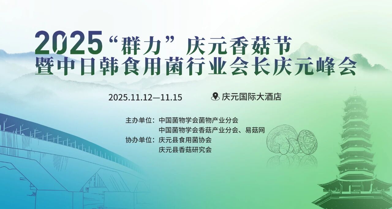 近年來,世界經濟增速放緩,國際環境復雜多變,我國作為全球最大的食用菌生產國和出口國,面臨消費市場波動、行業競爭加劇等嚴峻挑戰。為進一步加強國際交流與合作,探索符合新時代格局下的產業發展路徑,經與有關國家行業組織商議,擬于2025年11月12-15日在浙江省慶元縣舉辦“2025‘群力’慶元香菇節暨中日韓食用菌行業會長慶元峰會”。并邀請歐洲施爾豐公司代表參加交流,本次活動旨在匯聚中日韓及歐洲食用菌行業同仁,共同探討產業升級發展路徑,促進食用菌產業健康和可持續發展。有關活動安排計劃如下: