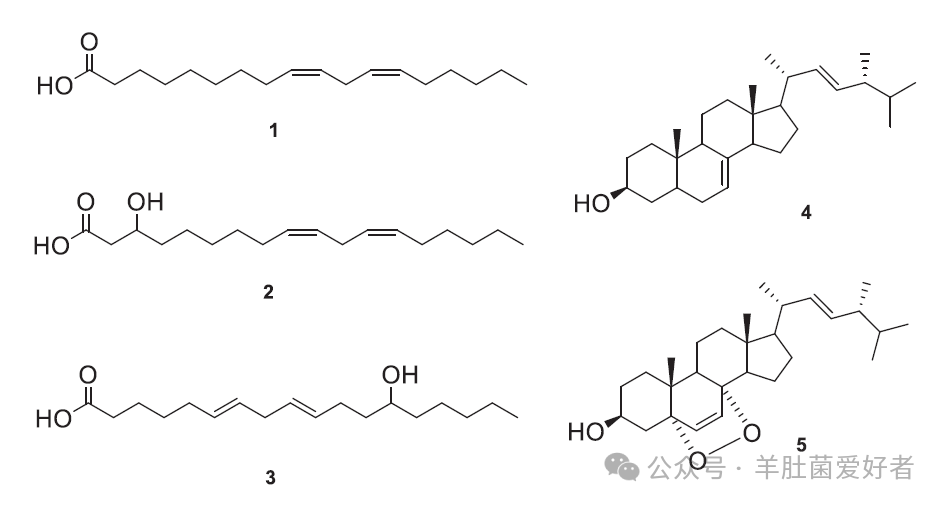 此外,還有兩種羥基化的脂肪酸衍生物也顯示出一定的抑制效果。這些都是首次在羊肚菌中被報(bào)道。