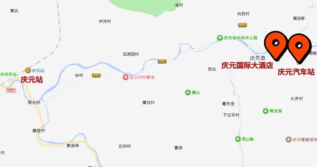 若您所在城市無直達班次,建議可參考以下中轉站換乘至慶元站,再按上述方式前往酒店。