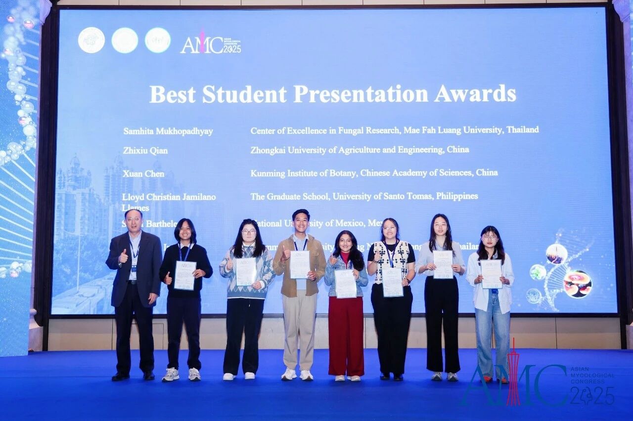 【核心提示】:2025年亞洲菌物學大會在廣州設3個分會場,25名學生登臺報告,其中中泰菲墨7人獲首屆“優秀學生報告獎”,中國菌物學會理事長郭良棟頒獎,大會以獎促研,為全球菌物學注入青年動能。