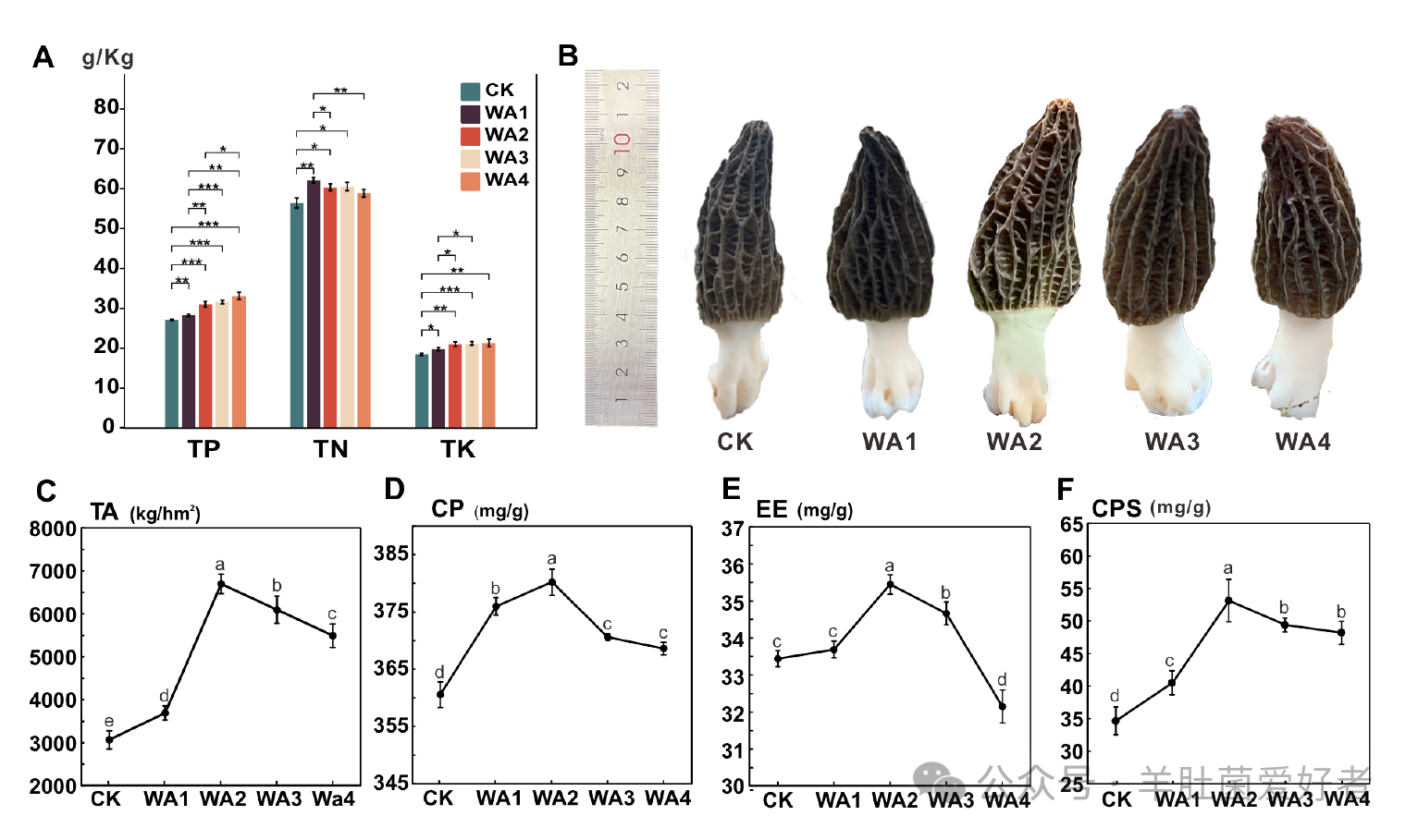 參考文獻:Huang, K.; Li, L.;Wu,W.; Pu, K.; Qi, W.; Qi, J.; Li, M. Enhancing Morchella Mushroom Yield and Quality Through the Amendment of Soil Physicochemical Properties and Microbial Community with Wood Ash. Microorganisms 2024, 12, 2406. https://doi.org/10.3390/microorganisms12122406